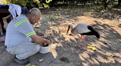 Dörtyol’da bir vatandaşın bahçesinde bitkin halde bulduğu leylek koruma altına alındı. Yusuf Poyraz, Numune Evler...
