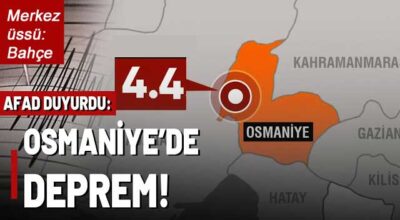 Osmaniye’nin Bahçe ilçesinde, saat: 12.09’da 4,4 büyüklüğünde deprem meydana geldi. Afet ve Acil Durum Yönetimi...