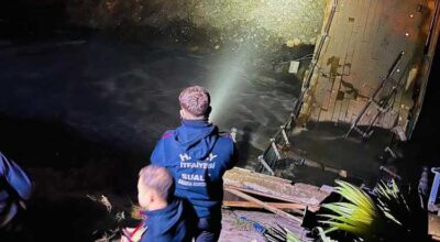 AFAD ve Hatay Büyükşehir Belediyesi ekipleri, Defne’de bir bölümü yıkılan yaya köprüsünün çevresinde önlem aldı....