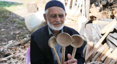 Kırıkhan’da 85 yaşındaki Ahmet Eden, dağdan topladığı ağaç dallarını 69 yıldır kaşığa dönüştürüyor. Amanos Dağları...